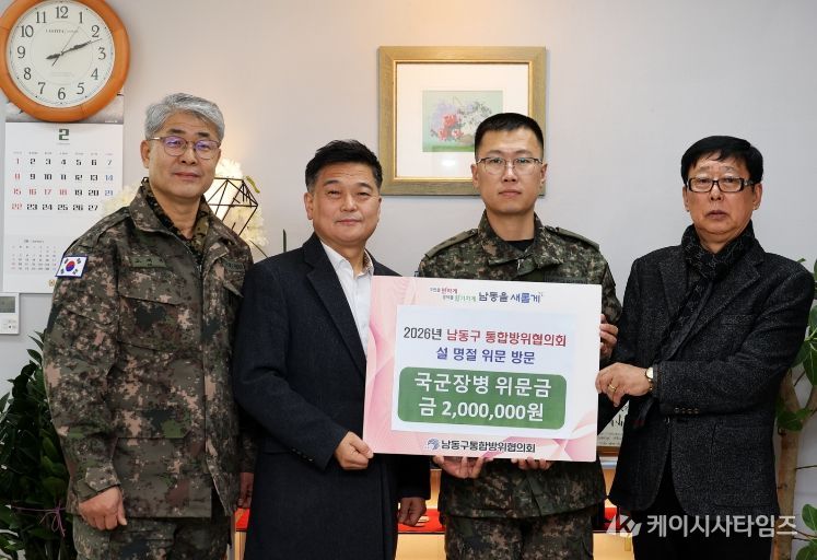 (케이시사타임즈) 인천시 남동구 통합방위협의회(회장 임동표)는 설 명절을 맞아 지역 안보에 힘쓰는 미추홀여단 비룡대대를 방문해 군 장병을 격려하고 위문금을 전달했다고 10일 전했다.