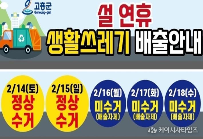 (케이시사타임즈) 고흥군은 설 명절 연휴 기간 동안 생활폐기물로 인한 주민 불편을 최소화하고 쾌적한 생활환경을 유지하기 위해 설 연휴 생활폐기물 관리대책을 수립하고 본격 추진한다고 밝혔다.