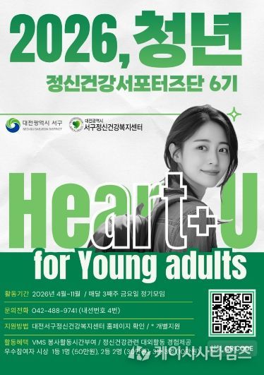 (케이시사타임즈) 대전 서구 정신건강복지센터는 다음 달 6일까지 청년 정신건강 서포터즈 ‘마음이어유’ 6기 참여자를 모집한다.