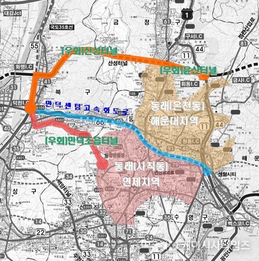 만덕IC 일원 등 만덕센텀 고속화도로에서 지정체가 발생할 경우, ▲동래구(사직동)·연제구와 만덕동 일원을 오가는 이용객은 만덕초읍(아시아드)터널을 ▲금정구 및 동래구 등 북부산권 이용객은 윤산터널과 산성터널의 교통상황을 비교해 이용하면 편리하다.