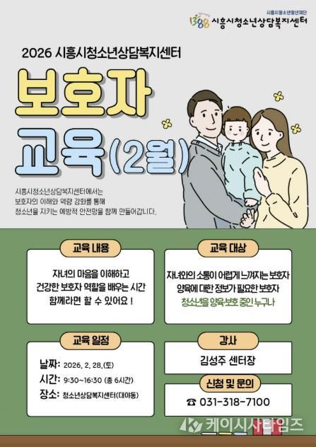(케이시사타임즈) 시흥시청소년청년재단 산하기관인 시흥시청소년상담복지센터가 보호자의 이해와 역할 강화를 통해 청소년을 지키는 예방적 안전망을 구축하고자 2026년부터 보호자 교육을 정기적으로 운영하고 있다.