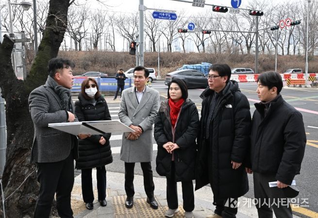 (케이시사타임즈) 서울특별시의회 시민권익위원회 위원으로 활동하고 있는 박춘선 의원(강동3, 국민의힘)이 2월 10일 교통정체로 시민 불편이 지속되고 있는 가산한내보도육교 앞 교차로를 직접 찾아 현장 점검을 실시했다. 현장에는 서울특별시의회 현장민원과와 서부간선도로 주관 부서인 서울시 도로계획과, 도시기반시설본부 관계자가 함께 했다.