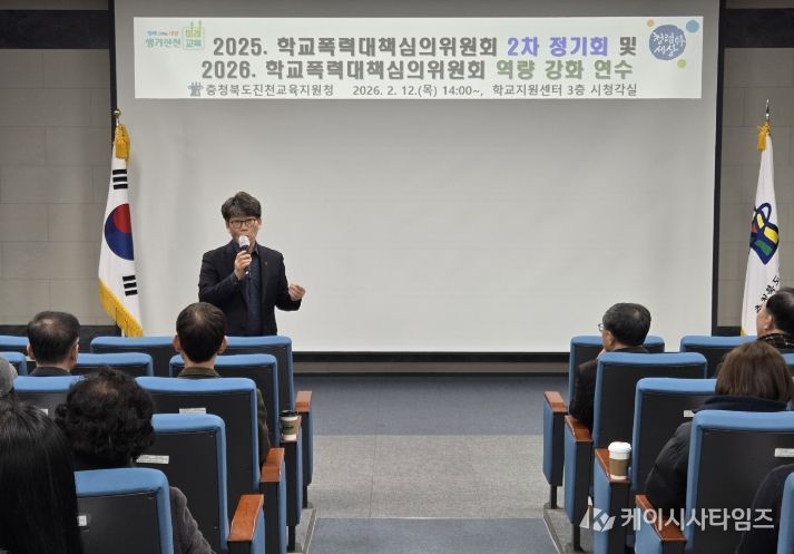 (케이시사타임즈) 충청북도진천교육지원청은 지난 2월 12일, 학교폭력대책심의위원회 위원 36명을 대상으로‘2025학년도 하반기 학교폭력대책심의위원회 운영 결과 보고 및 2026. 학교폭력대책심의위원회 역량 강화 연수’를 실시했다.