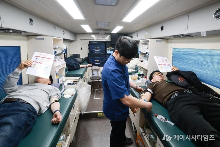 (케이시사타임즈) 대전 유성구는 13일 유성구청 주차장에서 ‘혈액 수급 안정화를 위한 단체 헌혈 행사’를 진행했다.