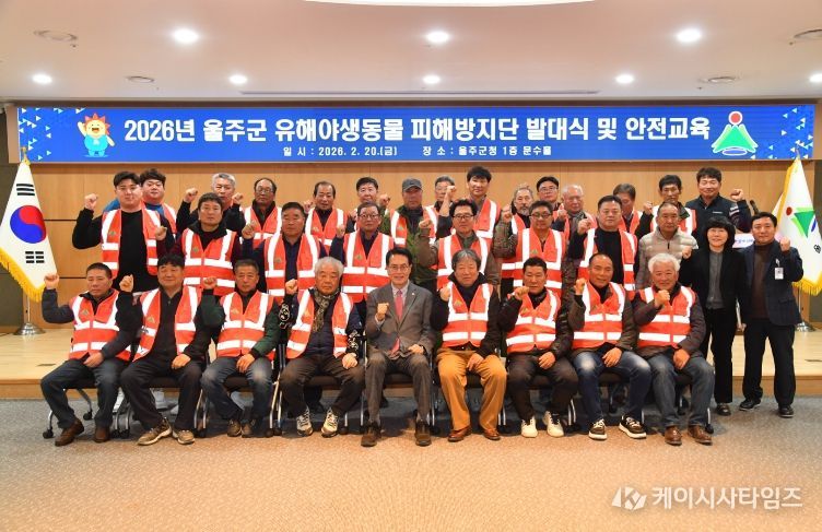 (케이시사타임즈) 울산 울주군이 20일 군청 문수홀에서 ‘2026년 유해야생동물 피해방지단’ 발대식과 안전교육을 실시했다.