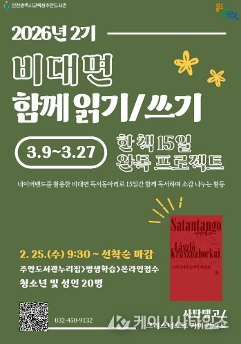 이번 프로그램은 정지선 독서지도 전문 강사의 안내에 따라 ‘사탄 탱고’를 함께 읽으며, 네이버 밴드를 활용해 감상평을 공유하고 한 권의 책을 15일간 완독하는 방식으로 3월 9일부터 27일까지 운영한다.