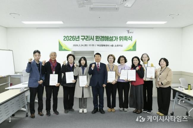 (케이시사타임즈) 구리시는 24일 여성행복센터 소회의실에서 ‘2026년 구리시 환경해설가 위촉식’을 개최하고, 지역 환경교육을 이끌어 갈 환경해설가들에게 위촉장을 수여했다.