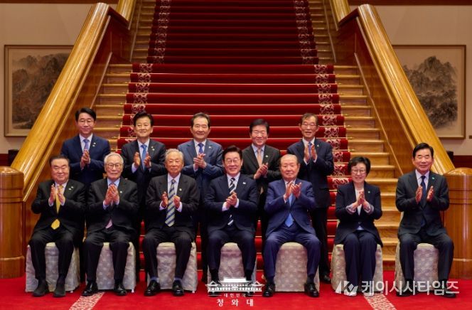 (케이시사타임즈) 이재명 대통령은 오늘 청와대 본관에서 1시간 45분 동안 민주당 상임고문 열 분과 오찬 간담회를 가졌다. 참석자는 권노갑 고문과 김원기·임채정·문희상·김진표·정세균·박병석 전 국회의장, 한명숙 전 총리, 정동영 통일부 장관, 이용득 고문이다.