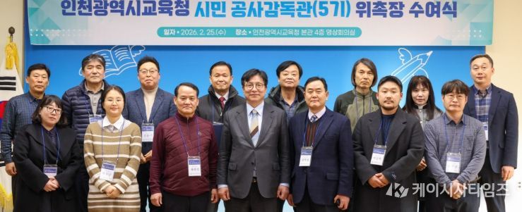 (케이시사타임즈) 인천광역시교육청은 지난 25일 시교육청 영상회의실에서 학교 시설공사의 투명성과 신뢰성을 높이기 위한 ‘시민 공사감독관 5기 위촉식’을 개최했다.