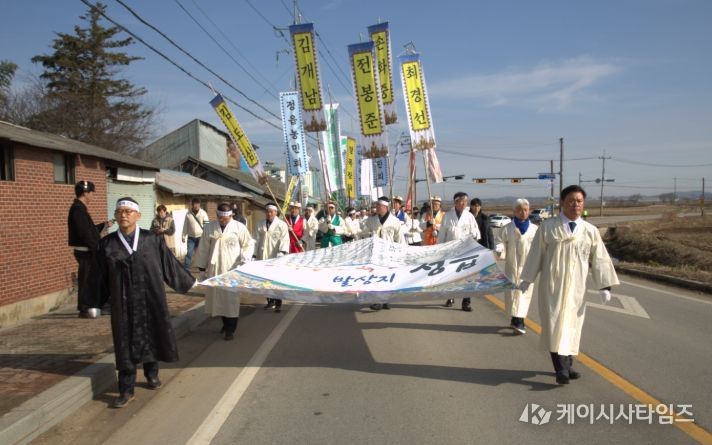 (케이시사타임즈) 132년 전 부당한 권력에 맞서 평등 세상을 외쳤던 농민들의 뜨거운 함성이 정읍 일대에 다시 울려 퍼졌다. 26일 이평면과 고부 일원에서 열린 고부봉기 재현행사가 성황리에 막을 내렸다.