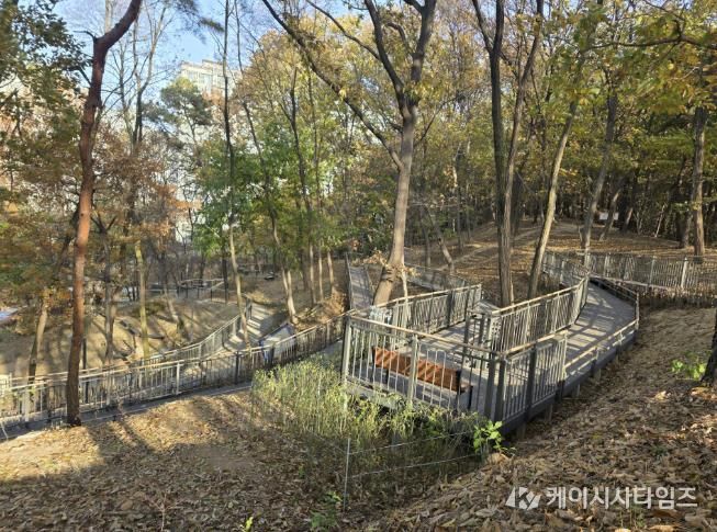 청주시는 지난해 11월 성화근린공원 내에 무장애 숲길 650m를 조성하고, 휠체어 이용이 가능한 놀이시설(무장애 회전놀이대, 집라인, 미끄럼틀 등 6종)과 휴식·체험 공간을 마련했다.