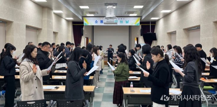 이날 다짐식에서는 전 직원이 함께 청렴실천 서약서를 낭독한 후 서명하며, 법과 원칙을 준수하고 반부패 활동에 적극 참여할 것을 다짐했다.