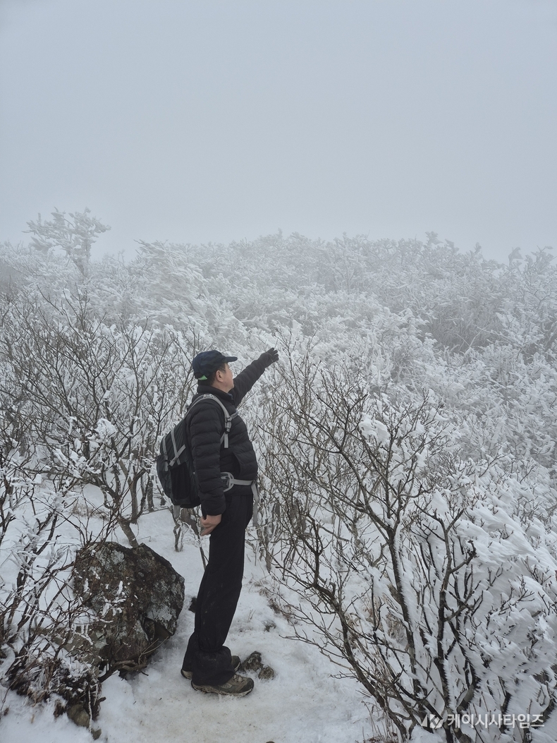 영남알프스를 대표하는 산 가운데 하나인 신불산에 눈이 한가득 쌓여있다. 신불산은 영남알프스 산군 중에서도 등산 난도가 높은 ‘악산(惡山)’으로 알려져 있다.