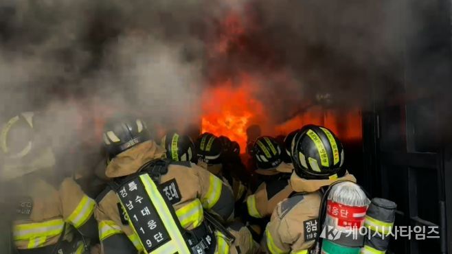 (케이시사타임즈) 경상남도 소방본부는 3일 경상남도 소방인재개발원 실화재 훈련장에서 119특수대응단 소속 구조대원 31명이 참여한 가운데, ‘특수 화재 및 이상 현상 대응 훈련’을 강도 높게 실시했다고 밝혔다.