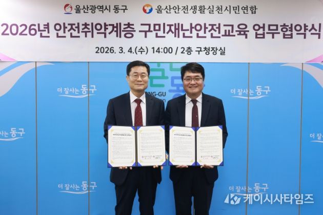 (케이시사타임즈) 동구는 구민의 재난 대응 역량 강화를 위해 3월 4일 오후 2시 구청장실에서 울산 안전생활실천시민연합과 구민 재난 안전 교육 활성화를 위한 업무협약을 체결했다.
