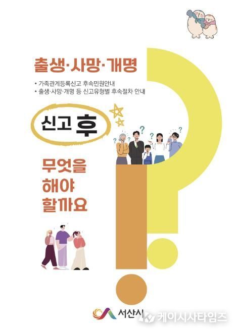 (케이시사타임즈) 충남 서산시는 가족관계등록신고에 대한 후속민원을 한눈에 알아볼 수 있도록 ‘출생ㆍ사망ㆍ개명 신고 후 무엇을 해야 할까요?’ 책자를 발간했다고 밝혔다.