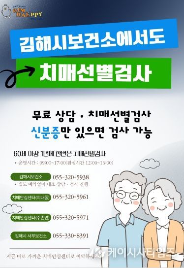 (케이시사타임즈) 김해시는 김해시보건소에서도 치매선별검사를 받을 수 있다고 6일 밝혔다.