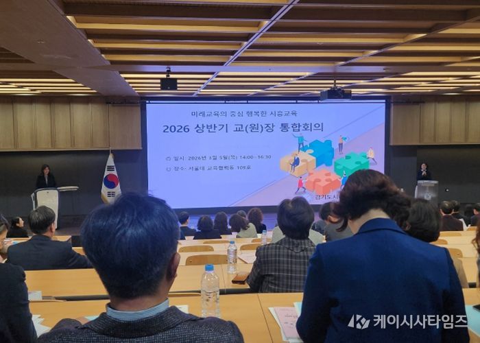 (케이시사타임즈) 경기도시흥교육지원청은 3월 5일 서울대 시흥캠퍼스 교육협력동에서 ‘미래교육의 중심 행복한 시흥교육’ 실현을 위한 공감과 소통의 2026 초중고 학교장 및 유치원 원장 통합 회의를 개최했다.
