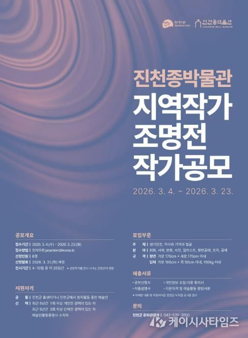 (케이시사타임즈) 충북 진천종박물관이 지역 예술인의 창작활동을 지원하고 지역 문화예술의 저변을 넓히기 위해 ‘지역작가 조명전: 틈새갤러리’참여 작가를 공개 모집한다.