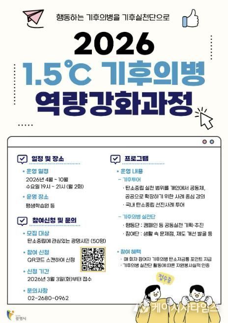 시는 시민과 함께하는 2050 탄소중립 실현을 위해 오는 20일까지 ‘2026년 1.5℃ 기후의병 역량강화 과정’에 참여할 시민 50명을 모집한다.
