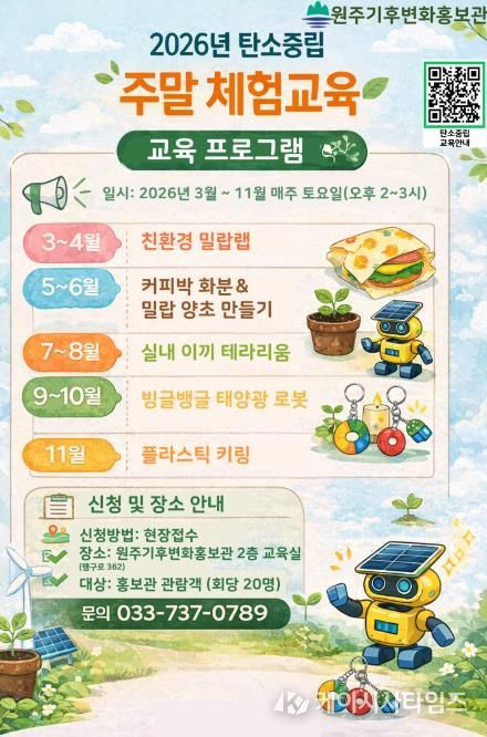 맹순재 원주시 기후대응과장은 “이번 탄소중립 주말 체험교육이 시민들이 환경 문제를 친숙하게 이해하고, 생활 속 탄소중립 실천에 참여하는 계기가 되길 기대한다”라고 말했다.