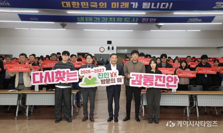 (케이시사타임즈) 진안군은 6일 군청 강당에서 ‘2026-2027 진안 방문의 해’ 성공을 기원하는 전 직원 다짐 퍼포먼스를 개최했다.