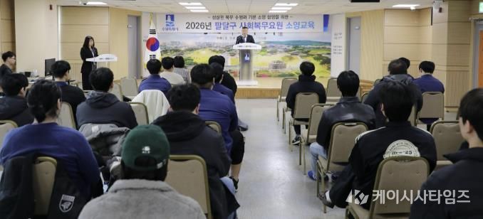 (케이시사타임즈) 수원시 팔달구는 지난 5일 팔달구청 대회의실에서 사회복무요원 전원을 대상으로 2026년 상반기 소양교육을 실시했다.