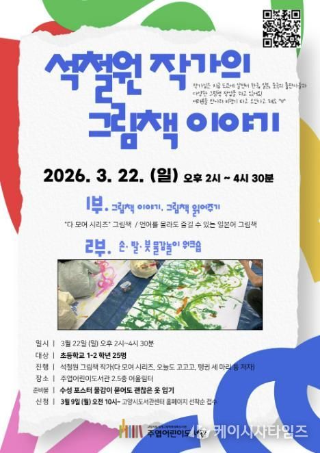 (케이시사타임즈) 고양특례시 주엽어린이도서관은 어린이들이 그림책 작가를 직접 만나 창작 이야기를 듣고 물감놀이에 참여할 수 있는 프로그램 ‘석철원 작가의 그림책 이야기’를 오는 3월 22일 운영한다.