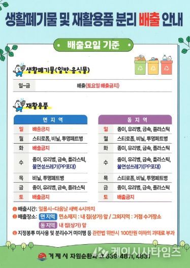 (케이시사타임즈) 거제시는 생활폐기물의 올바른 배출 문화를 정착시키고 깨끗한 도시환경을 조성하기 위해‘생활폐기물 분리·배출 도우미’를 채용·운영하고 올해부터 불법 배출 쓰레기에 대한 단속과 과태료 부과도 강화할 방침이다.