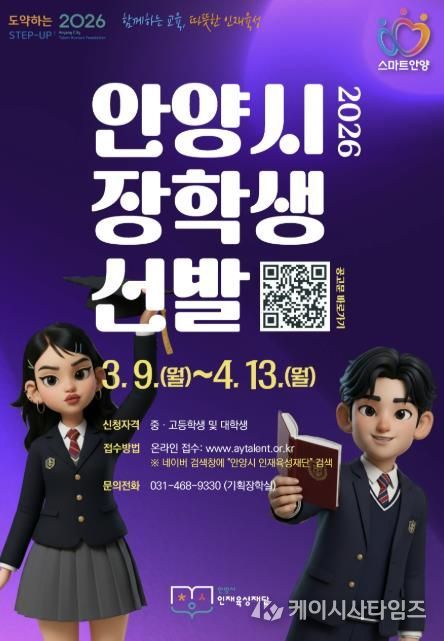 (케이시사타임즈) 안양시 인재육성재단은 안양시 중·고등학생 및 대학생을 대상으로 2026년 상반기 장학생을 선발한다고 9일 밝혔다.