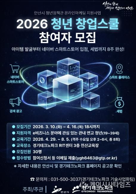 (케이시사타임즈) 안산시는 e비즈니스 분야 청년 창업자의 안정적인 시장 진입과 사업 운영을 지원하기 위해 ‘청년 창업스쿨’ 참여자를 모집한다고 10일 밝혔다.