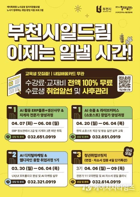 신청 방법과 교육 일정 등 자세한 사항은 부천시일드림센터 홈페이지에서 확인할 수 있다.