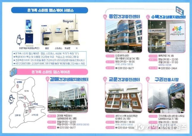 (케이시사타임즈) 구리시는 최첨단 정보통신기술(ICT)을 활용해 시민들이 생활권 가까운 곳에서 만성질환을 예방하고 자가 건강관리 능력을 높일 수 있도록 운영 중인 ‘온가족 스마트 헬스케어존’ 5개소에 대해 3월 한 달간 집중 홍보를 한다고 밝혔다.