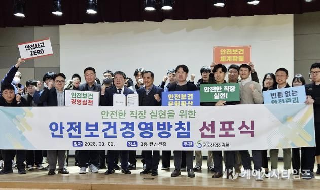 (케이시사타임즈) 군포산업진흥원은 지난 9일 청사 3층 컨벤션홀에서 기관 임직원이 참석한 가운데 '2026년 안전보건경영 선포식'을 개최했다.