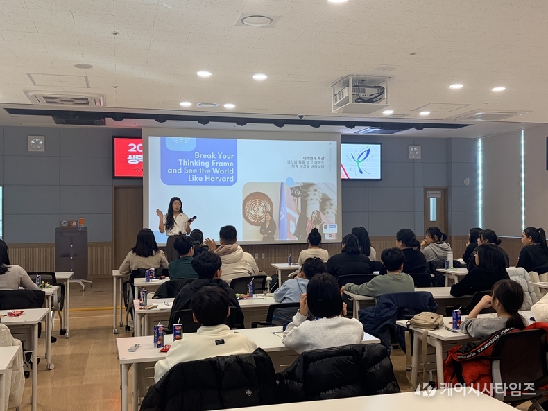 특강은 총 2부로 구성됐다. 1부에서는 KBS인재개발원 이경호 주임교수가 ‘사고의 혁신을 통한 미래인재 되기’를 주제로 디자인씽킹 기반의 창의적 문제해결 방법을 소개했다. 이어 2부에서는 하버드대학교 출신 글로벌 교육 전문가 미셸 김-리시(Michelle Kim-Rissi)가 ‘하버드 교육은 세상을 어떻게 변화시키는가’를 주제로 글로벌 교육 경험과 지속가능성 교육 사례를 공유했다.