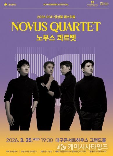 (케이시사타임즈) 대구콘서트하우스(관장 박창근)가 선보이는 ‘2026 DCH 앙상블 페스티벌’의 대미를 장식할 하이라이트 무대가 찾아온다. 세계적인 현악사중주단 ‘노부스 콰르텟(Novus Quartet)’의 공연이 오는 3월 25일 오후 7시 30분 대구콘서트하우스 그랜드홀에서 열린다.