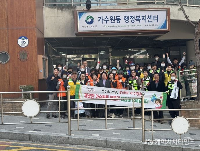 (케이시사타임즈) 대전 서구 가수원동 행정복지센터는 청사와 상점가 및 가수원초등학교 일원에서 봄맞이 환경정화 캠페인을 펼쳤다고 12일 밝혔다.
