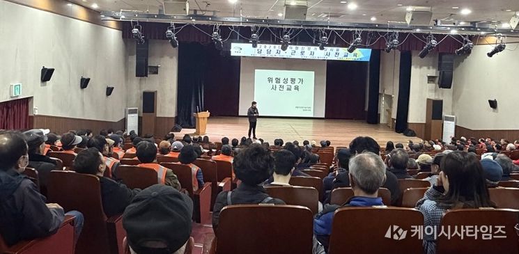 이번 평가는 산업재해예방팀, 관리감독자, 근로자, 안전관리 전문기관 합동으로 진행된다. 이에 앞서 군은 최근 기장군청에서 관리감독자와 업무담당자, 근로자 등 350여명을 대상으로 사전교육을 실시했다.