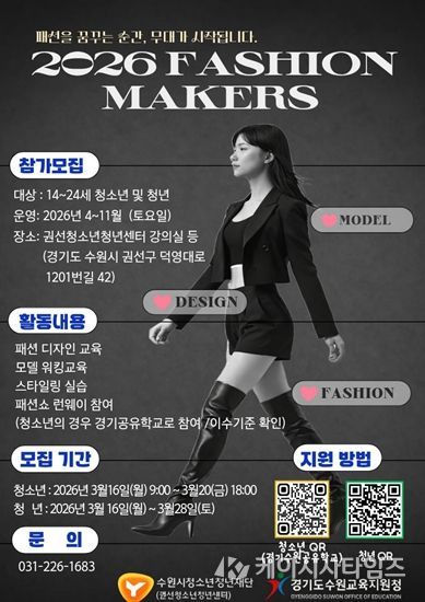 (케이시사타임즈) 수원시청소년청년재단 권선청소년청년센터는 패션 분야 진로에 관심 있는 청소년과 청년을 대상으로 ‘패션메이커스(Fashion Makers)’ 프로그램 참가자를 모집한다.