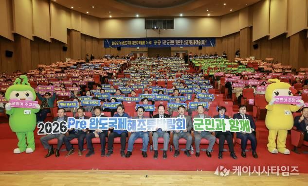 (케이시사타임즈) 완도군은 3월 13일 완도문화예술의전당에서 ‘2026 Pre완도국제해조류박람회’ 개막을 50일 앞두고 성공적인 개최를 염원하는 군민 결의 대회를 열었다.