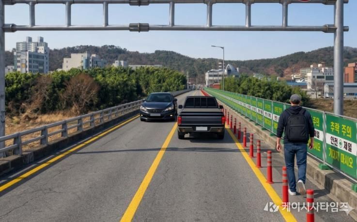 (케이시사타임즈) 울산 중구가 주민들의 안전을 위해 삼호교(차도교) 차로 폭을 조정해 임시 통행로를 조성한다.