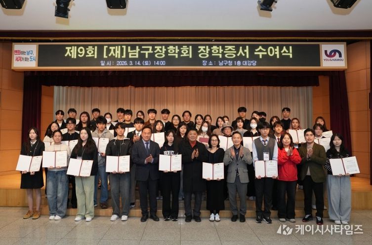 (케이시사타임즈) (재)부산광역시 남구장학회(이사장 김태유)는 지난 3월 14일 남구청 대강당에서 장학생과 학부모 등 80여 명이 참석한 가운데 2026년도 남구장학회 장학 증서 수여식을 개최했다.