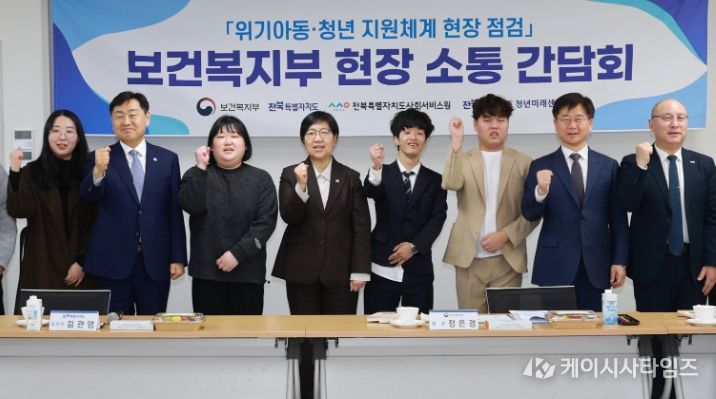 (케이시사타임즈) 전북특별자치도가 16일 전북 청년미래센터에서 정은경 보건복지부 장관과 김관영 전북자치도지사가 참석한 가운데 오는 26일 시행되는 '가족돌봄 등 위기아동청년 지원에 관한 법률' 운영 현황을 점검하고, 현장 관계자 및 청년 당사자들의 의견을 듣는 간담회를 개최했다. 이번 방문은 전북이 보건복지부가 추진 중인 위기청년 전담지원 시범사업에서 성과를 내고 만큼, 운영 실태를 직접 확인하기 위해 마련됐다.