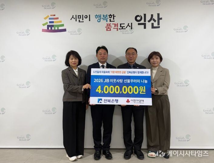 기탁식에는 전북은행 익산시청 영업점 최종구 부행장과 김은경 센터장, 최윤희 영업점장 등이 참석했다.