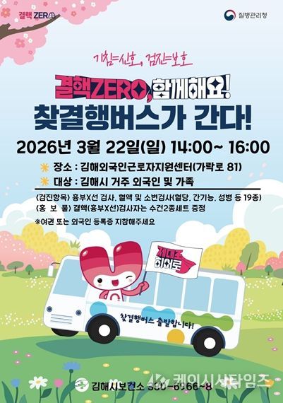 (케이시사타임즈) 김해시는 제16회 결핵예방의 날(3월 24일)을 맞아 오는 22일 오후 2시부터 4시까지 김해외국인근로자지원센터에서 '찾아가는 외국인 무료 결핵검진'을 실시한다고 18일 밝혔다.