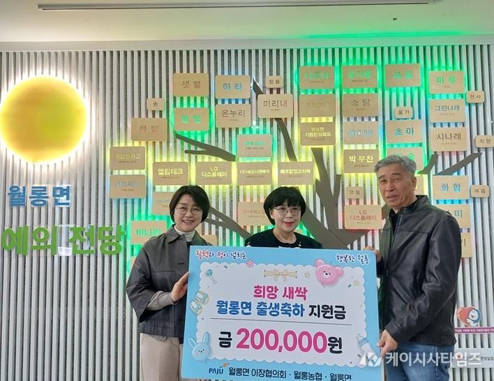 (케이시사타임즈) 파주시 월롱면 이장협의회는 지난 17일 2025년 4분기 중 월롱면에서 태어난 출생아 가정에 1인당 20만 원의 ‘월롱 하나로마트 상품권’을 전달했다.