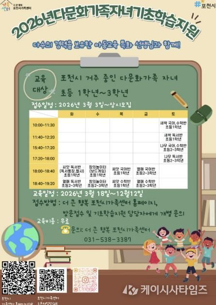 (케이시사타임즈) 포천시 더 큰 행복 포천시가족센터는 다문화가족 자녀의 안정적인 학교생활 적응과 학습 격차 해소를 위해 ‘다문화가족 자녀 기초학습지원 사업’을 18일부터 본격 운영한다.