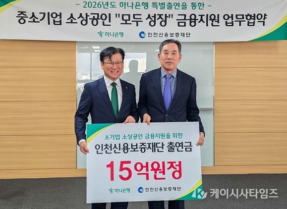 (케이시사타임즈) 인천신용보증재단은 하나은행과 함께 인천 지역 중소기업과 소상공인의 안정적인 자금 조달을 지원하기 위한 '중소기업·소상공인 “모두 성장” 금융지원 업무협약'을 체결했다고 밝혔다.