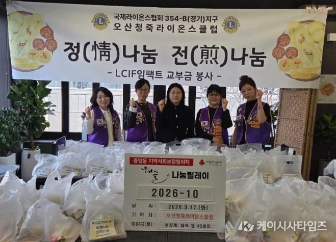 (케이시사타임즈) 오산시 중앙동 행정복지센터는 지난 17일 청죽라이온스클럽이 관내 취약계층을 위한 ‘사랑의 전 나눔’을 실천했다고 밝혔다.