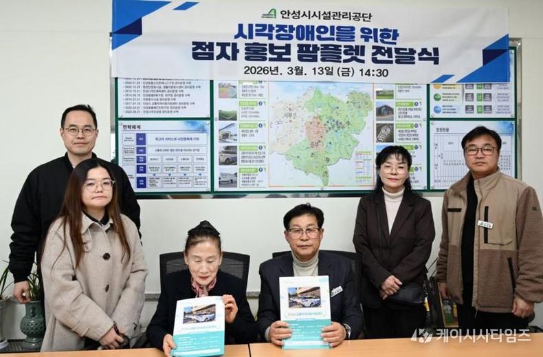 (케이시사타임즈) 안성시시설관리공단은 지난 13일 안성시 시각장애인협회에 시각장애인의 교통정보 접근성 향상을 위한 점자 홍보물(팜플렛)을 전달했다.